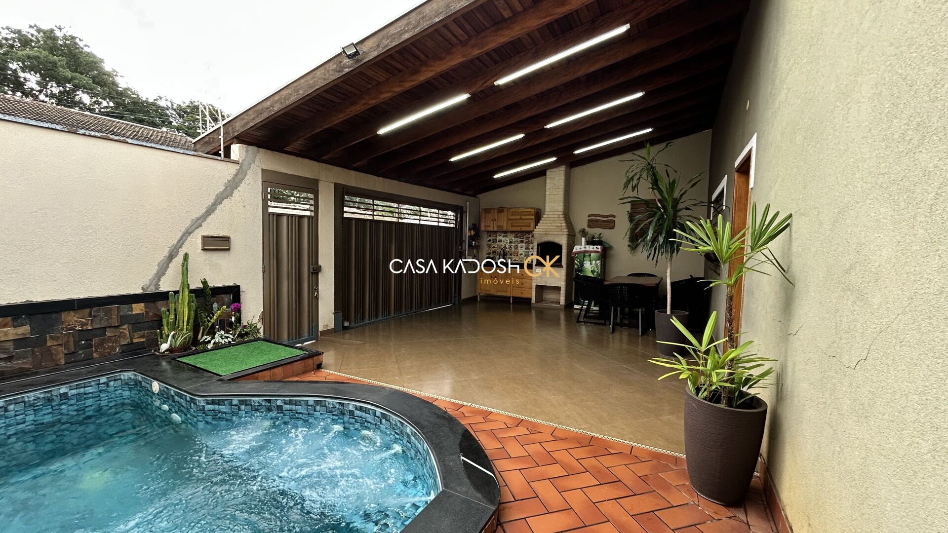 Desfrute de momentos de lazer e descontração na churrasqueira, espaço gourmet e piscina da casa, perfeitos para receber amigos e familiares.